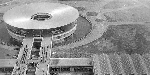 The pavilions, approaches, exteriors, and general design of the Ghana International Trade Fair was described as embodying “a sense of radical modernity, with unadorned walls, sharp edges against the sky, large spans, an abstract geometry of volumes, levitating roofs, rhythmic patterning, and rough concrete surfaces contrasted with plaster walls.” The Center was officially opened on February 1, 1967.